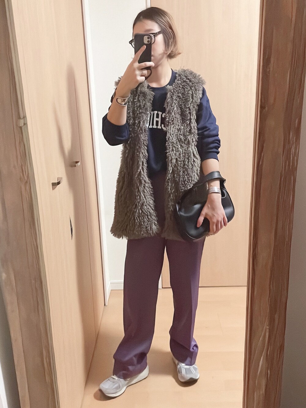 いつも見ていただきありがとうございます😊 いいね、フォロー、お気に入りとても嬉しいです! 今日もファーベストの着回しコーデ カレッジスウェットとも合うし本当に 何でもあう💯💯💯 スラックスは最近パープルがお気に入り🍇