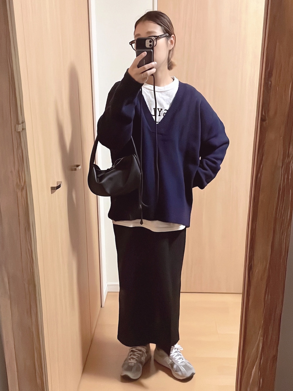 いつも見ていただきありがとうございます😊 いいね、フォロー、お気に入りとても嬉しいです♪ 今日はANGIEのカレッジロンTと深Vネックニットをレイヤードしたコーデ✨ どちらもゆるっとしたシルエットで着回しやすいのでとってもお気に入りです💯💯 本日クーポンDAYです🙌🏻