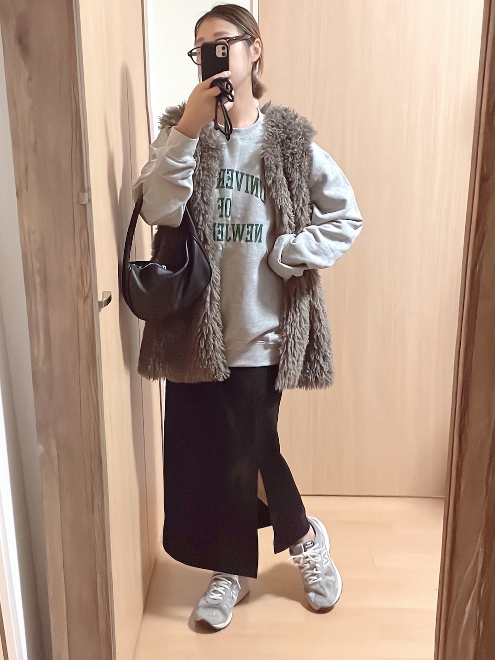 いつも見ていただきありがとうございます😊 いいね、フォロー、お気に入りとても嬉しいです♪ 今日はANGIEで大人気のカレッジスウェット杢グレーとファーベストを合わせたコーデ🐭 秋はやっぱりグレーが使えますね💯
