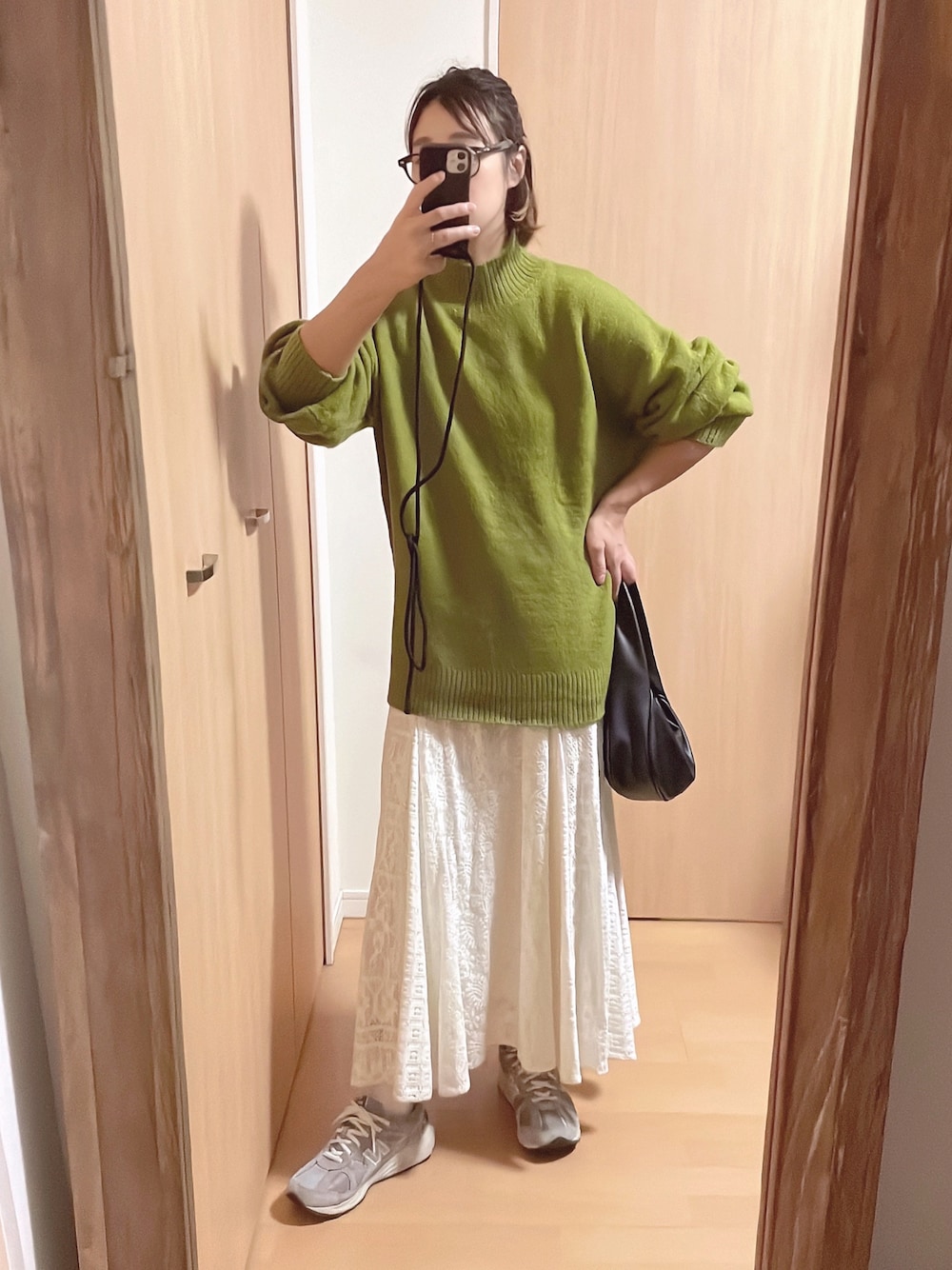 いつも見ていただきありがとうございます😊 いいね、フォロー、お気に入りとてもうれしいです✨ 今日はライムカラーのハイネックニットのコーディネート🧶 オーバーサイズなのでスカートなどと合わせてもかわいいです🙌 レースのスカートと合わせたら春まで着れそうで、なお良き🌸