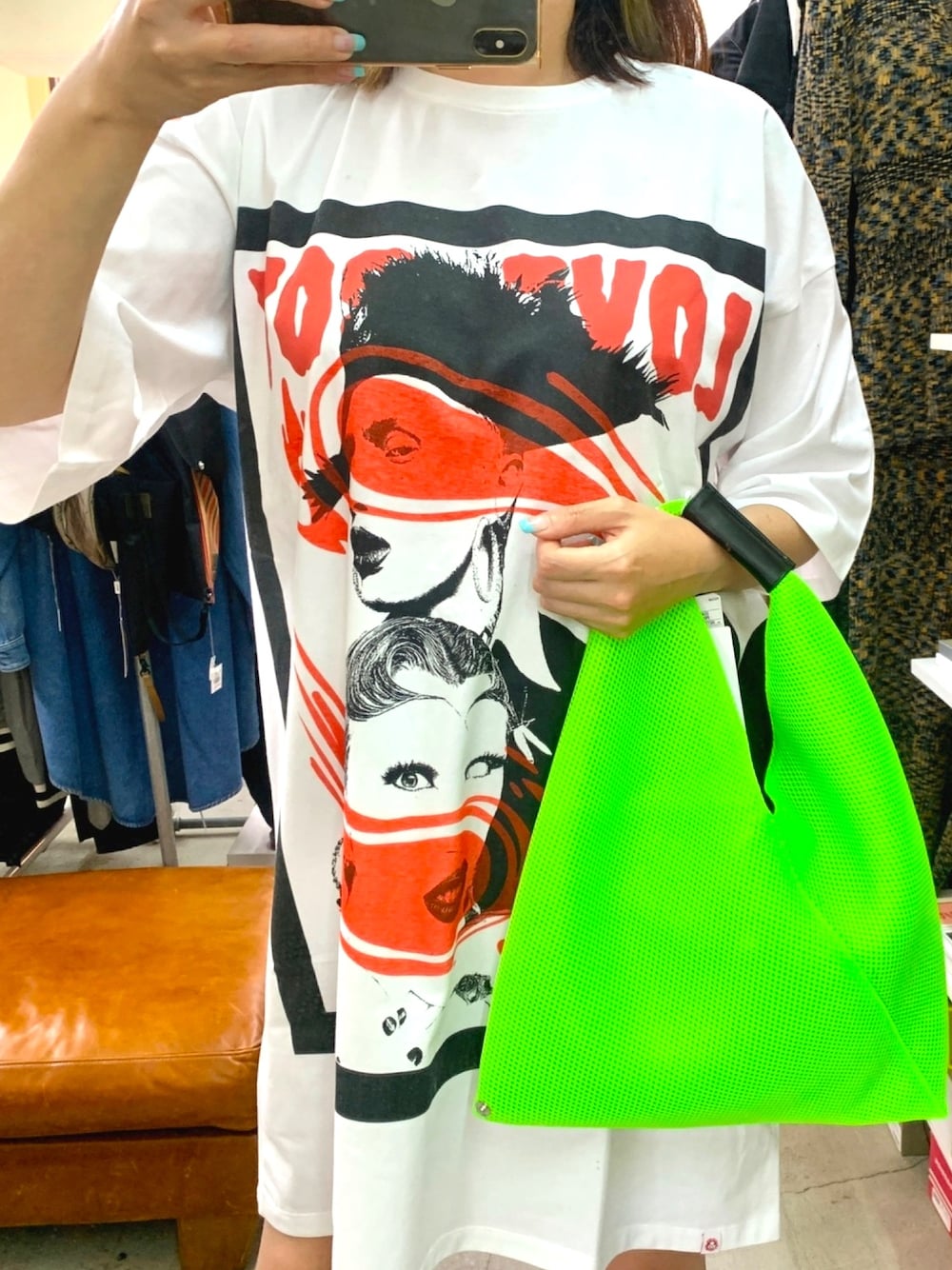 MM6 ネオンカラーのトライアングルバッグが入荷!全5色です🙆♀️ ワンピース丈のTシャツはC.Jeffrey!! ユニセックスです。