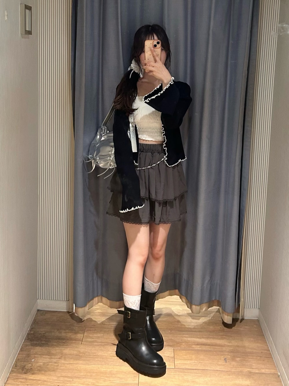 Yu.(Belle Charme渋谷109店)のスカート「チェーンベルト付きティアードミニスカート」を使ったコーディネート