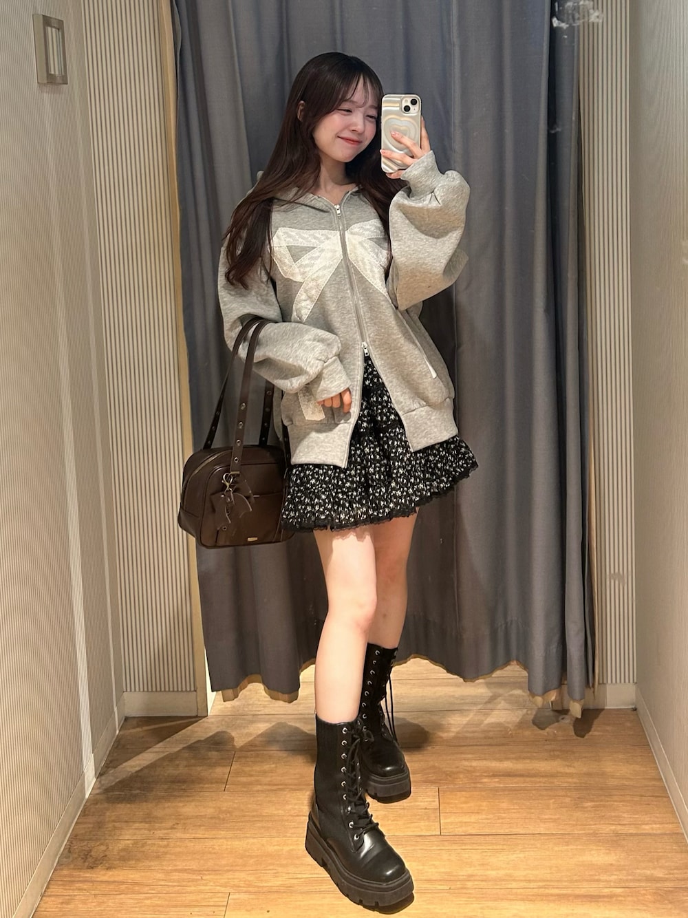 Yu.(Belle Charme渋谷109店)のショルダーバッグ「リボンチャーム付きスクエアボストン」を使ったコーディネート