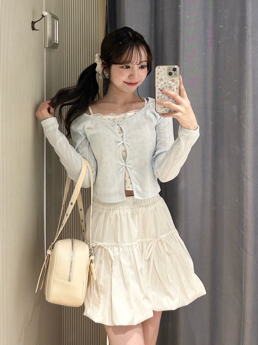 Yu.(Belle Charme渋谷109店)のショルダーバッグ「リボンチャーム付きスクエアボストン」を使ったコーディネート