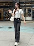 Yu.(Belle Charme渋谷109店)のデニムパンツ「【美シルエット/着痩せ】スタッズ付きストレッチデニムパンツ」を使ったコーディネート