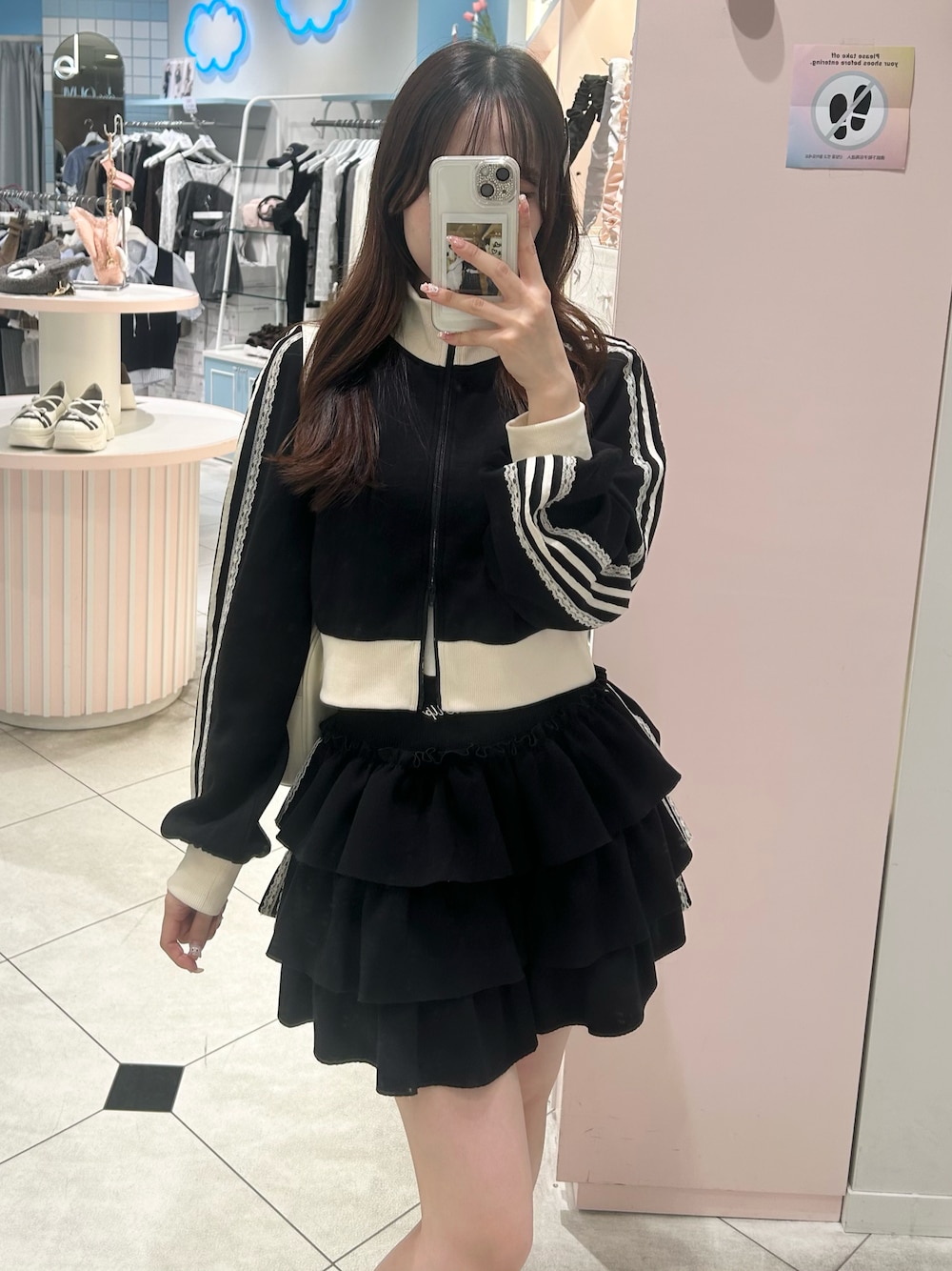 Yu.(Belle Charme渋谷109店)のジャージ「ショートトラックジャケット」を使ったコーディネート