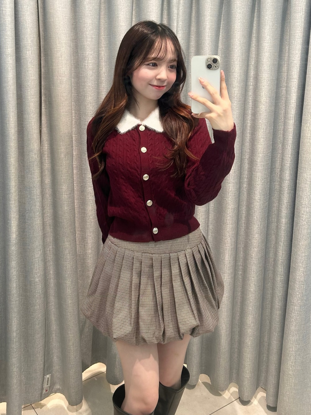 Yu.(OLIVE des OLIVE 渋谷109店)のトップス「フェザー衿カーディガン」を使ったコーディネート
