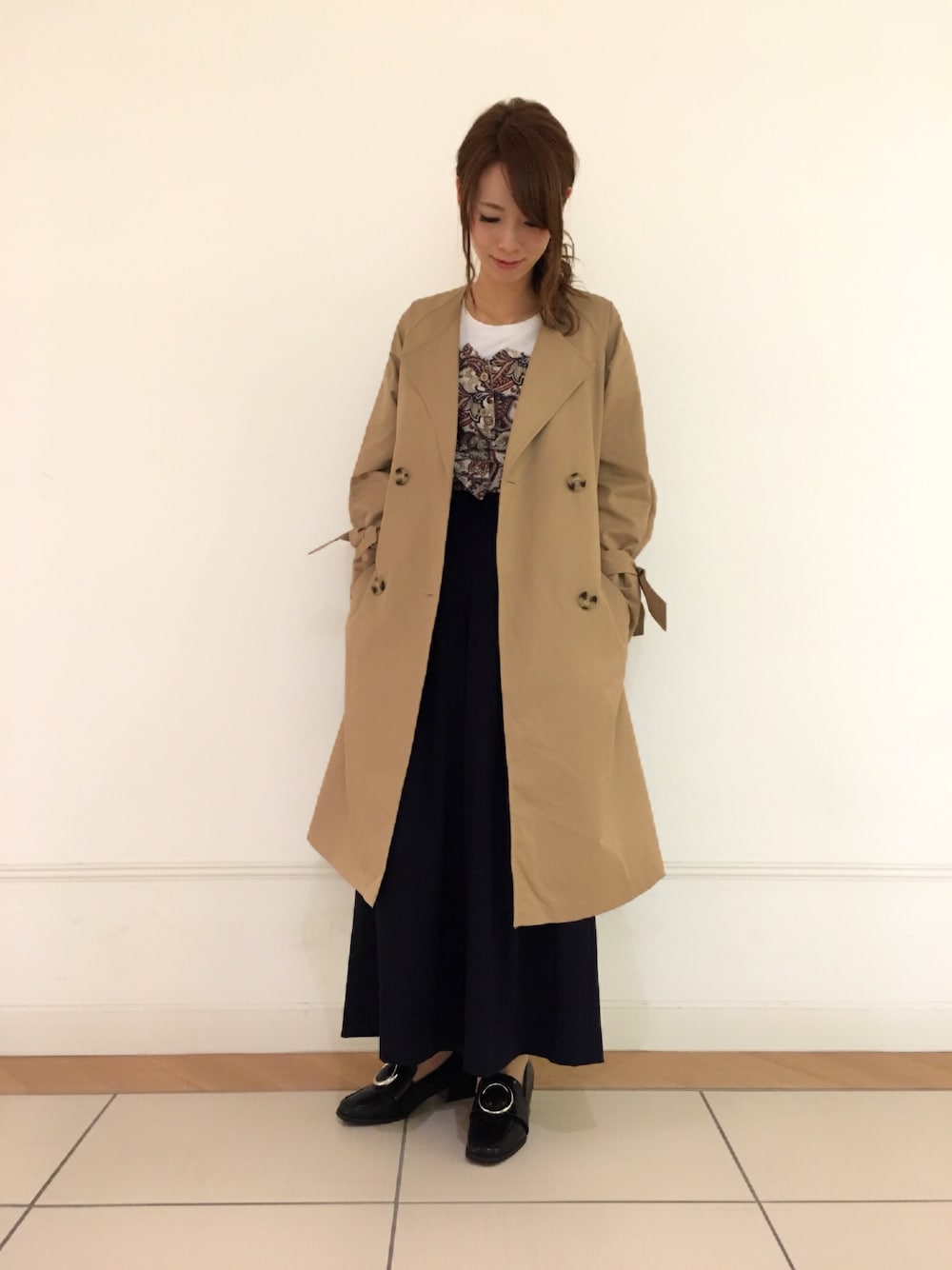 秋のトレンチコーディネート♪ ビッグシルエットで今年らしく、 お袖もゆったりめなので、 中にボリューム系のトップスも着られます♡