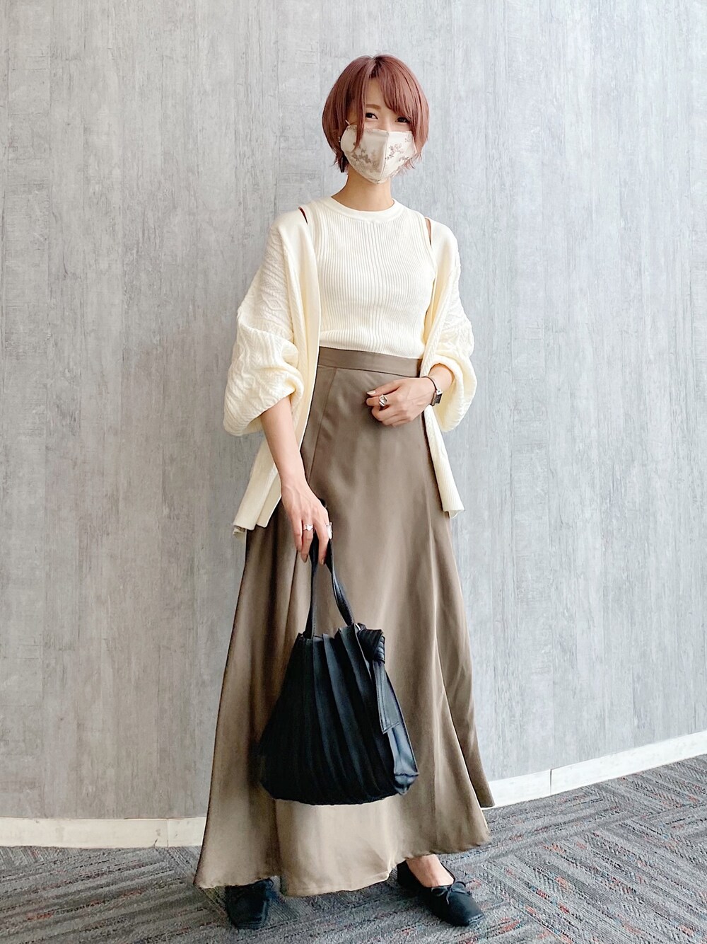 マーメイドシルエットが綺麗なサテンスカート✳︎ 付けているマスクもミスティのアイテムです! Instagram▷▶︎▷uemi_mw