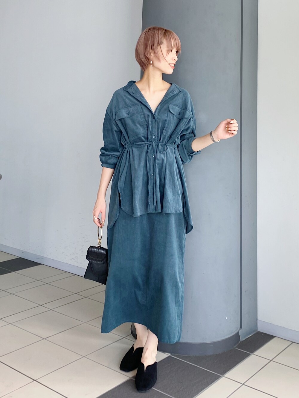 uemi(mysty woman 本部)のシャツ/ブラウス「ウエストマークコーデュロイシャツ 227708」を使ったコーディネート