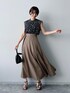 web限定のスカートが可愛すぎる!! ウエストは細く見えるしAラインが本当に綺麗✨ まだまだ暑い日が続くのでおすすめコーデです✳︎ Instagram▷▶︎▷uemi_mw