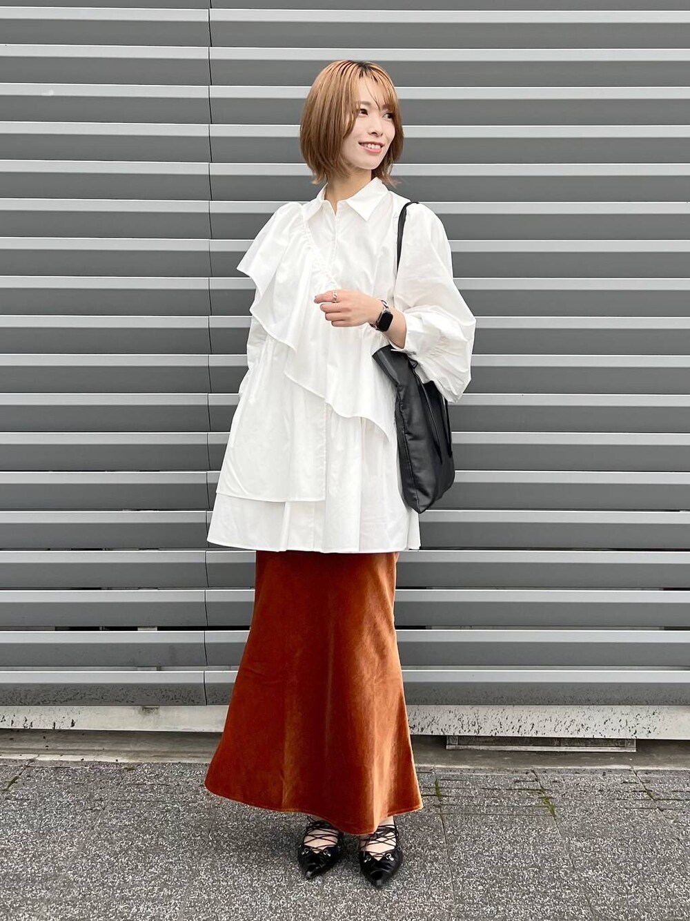 スワイプで別角度・動画も見れます* お洒落な友達とランチコーデ。 ●トップス ハリ感があり、程よくボリュームが出ます。 フリルサッシュは取り外しができ アレンジスタイルも楽しめます。 チュニック丈なので落ち感のあるスカートや パンツスタイルがおすすめ! ●スカート 光沢感が綺麗なベロアスカート。 伸縮性もあり、タイトでも履きやすいです。 ほんのりマーメイドシルエットで美ラインができます♡ ▼Instagramやってます▼ スタボには載せていない店頭新着情報やネイル画像、 リール動画もupしてます!