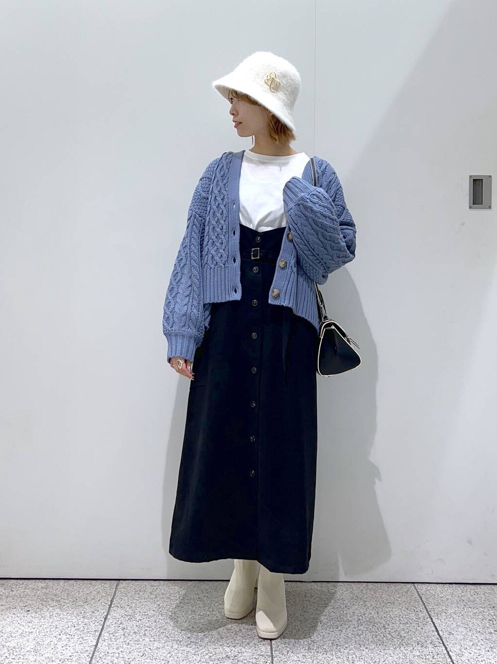スワイプで別角度・動画も見れます* ケーブルカーディガンのきれいめカジュアルコーデ。 ●カーディガン 温かみのあるざっくりケーブル編みのカーディガン。 厚みはある方ですが、重さは感じにくい優秀アイテム。 前上がり後ろ下がりの抜け感が可愛いです。 ●インナー ロゴも同色のシンプルなロンT。 大人っぽく着られます。 ●スカート 履くだけで足がめっちゃ長く見える人気のスカート。 アジャスターで長さの調整も可能です。 しっかりポケットも付いているので着やすいです! ●バッグ 配色パイピングが可愛いレザーバッグ。 ころんと小さめですが案外収納力もあります! どんなコーデにも合わせやすいベーシックカラー。 ●シューズ 普段23.5-24cmでLサイズを着用。 やや大きめでしたが幅広・靴下を履くので 私はLサイズにしました! 靴下感覚で履けるニットブーツは 脱ぎ履きが楽ちんで長時間歩く日も疲れにくいです。 ▼Instagramやってます▼ スタボには載せていない店頭新着情報やネイル画像、 リール動画もupしてます!
