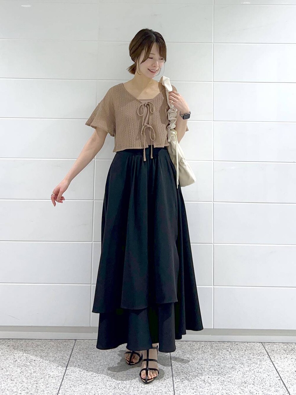 ▼使用アイテムは下からチェックできます▼ Instagramもやってます✌🏻 スタボには載せていない店頭新着情報やネイル画像、 リール動画もupしているので 【トップス】 ショート丈トップスとタンクトップのセットアイテム。 リボンはご自身で結べるようになってます。 二の腕を綺麗にカバーしてくれるお袖が嬉しいポイント! インナーは前後2wayで着ていただけます。 【スカート】 巻きスカート風のシルエットが綺麗なスカート。 ウエストがキュッと見えて好き♡