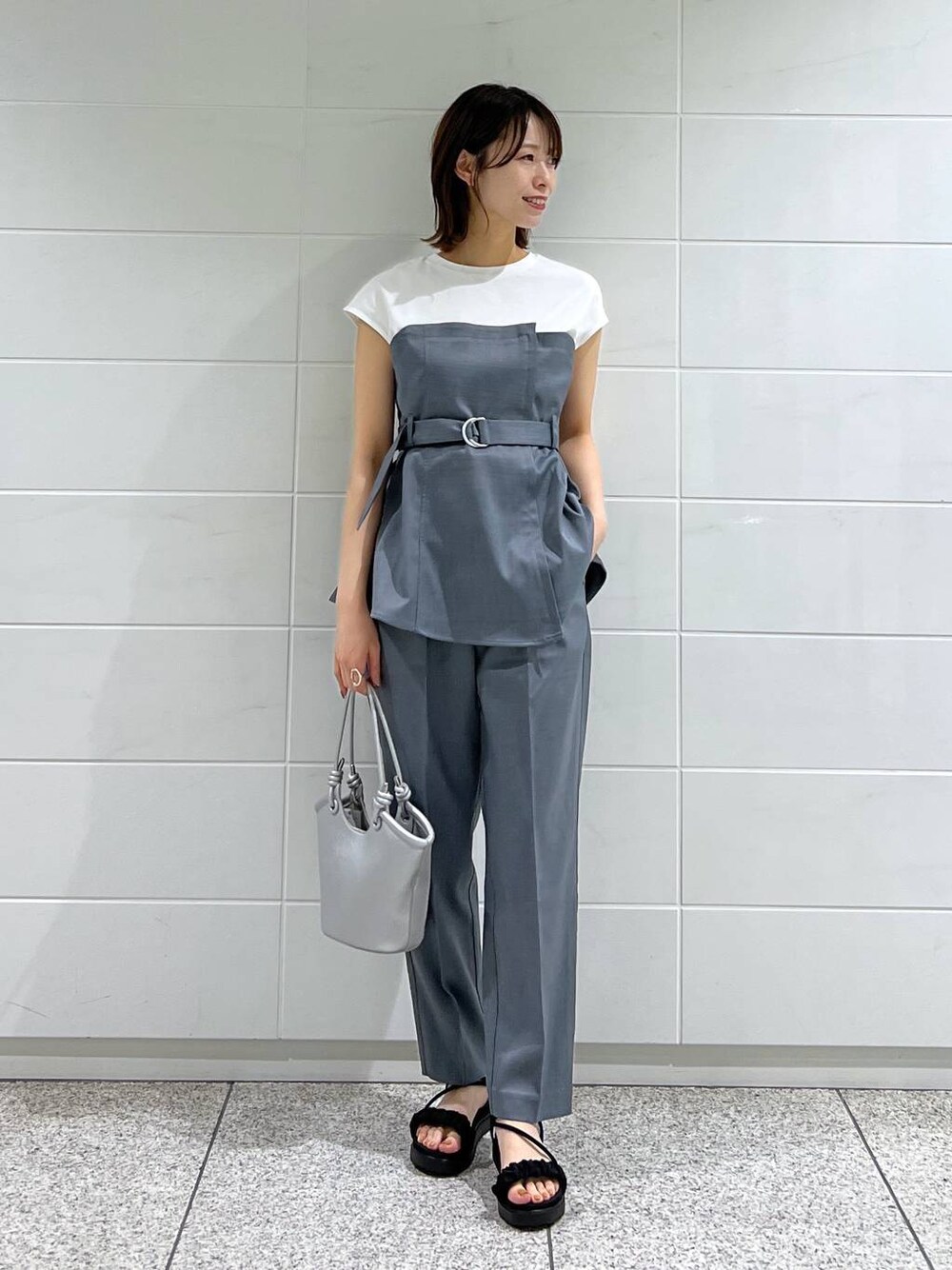 ▼使用アイテムは下からチェックできます▼ Instagramもやってます✌🏻 スタボには載せていない店頭新着情報やネイル画像、 リール動画もupしているので 色違いは 【トップス】 フレンチスリーブで二の腕をカバー◎ ビスチェデザインはくっ付いてるので これ一枚でおしゃれに決まります✨ ウエストベルトがついてるので着痩せ感もばっちり👏🏻 【パンツ】 センタープレスが入っているので縦ラインが強調され 脚が細く見えるパンツです! 腰回りにタブデザインが付いているので Tシャツなどをインして着るのも可愛いです♡