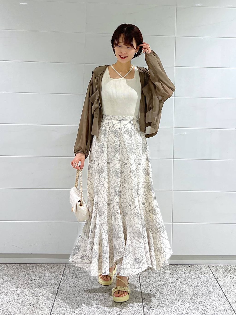 ▼使用アイテムは下からチェックできます▼ Instagramもやってます✌🏻 スタボには載せていない店頭新着情報やネイル画像、 リール動画もupしているので 【パーカー】 さらさらとした軽い素材で しわにもなりにくいので持ち歩きにも便利! フードがついているとカジュアルな印象に思いますが このパーカーは綺麗めに着られると人気です✨ 【インナー】 前後2wayで使えるインナー。 ストリングデザインはチラッと見せるだけで おしゃれ度があがるのでおすすめです! 【スカート】 マーメイドシルエットですが ぴたっとしない素材で着やすく美シルエットです。 歩くたびに揺れる裾が可愛いスカート😍 オールシーズン使える柄です!