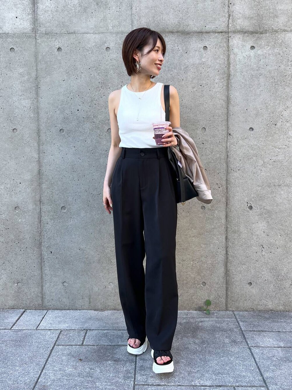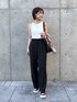 ▼使用アイテムは下からチェックできます▼ Instagramもやってます✌🏻 スタボには載せていない店頭新着情報やネイル画像、 リール動画もupしているので 【タンクトップ】 カップ付きのアメスリタンク。 カップは取り外しもできて使いやすい🙆♀️ シンプルなので着回したくさんできます! 脇が大きく開かないタイプなので挑戦しやすいです✨ 【パンツ】 Mサイズを着用。 ウエストやや緩いかな位ですが丈感はぴったりでした! ストンと落ちる素材で、センタープレス入りなので 脚がすっきり長く見えてまさに美シルエット✨ 生地も厚すぎず薄すぎずでオールシーズン履けます!