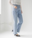 uemi(mysty woman 本部)のデニムパンツ「箔プリントフレアデニムパンツ 138180」を使ったコーディネート