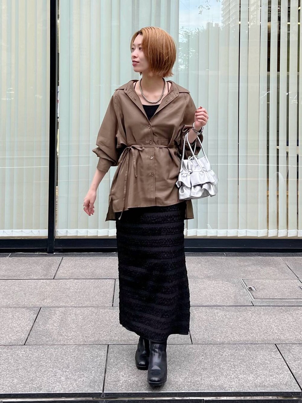 ▼使用アイテムは下からチェックできます▼ Instagramもやってます✌🏻 スタボには載せていない店頭新着情報やネイル画像、 リール動画もupしているので 【シャツ】 つやっとした生地が上品で大人っぽいシャツ。 ウエストマーク付きなので 目線が上がってスタイルアップ◎ 【スカート】 凹凸のある表面感が可愛いスカート。 伸縮性があるので着やすさ満点です💯 冬はニットで合わせて、春夏はTシャツでも可愛い オールシーズン使えるアイテムです!
