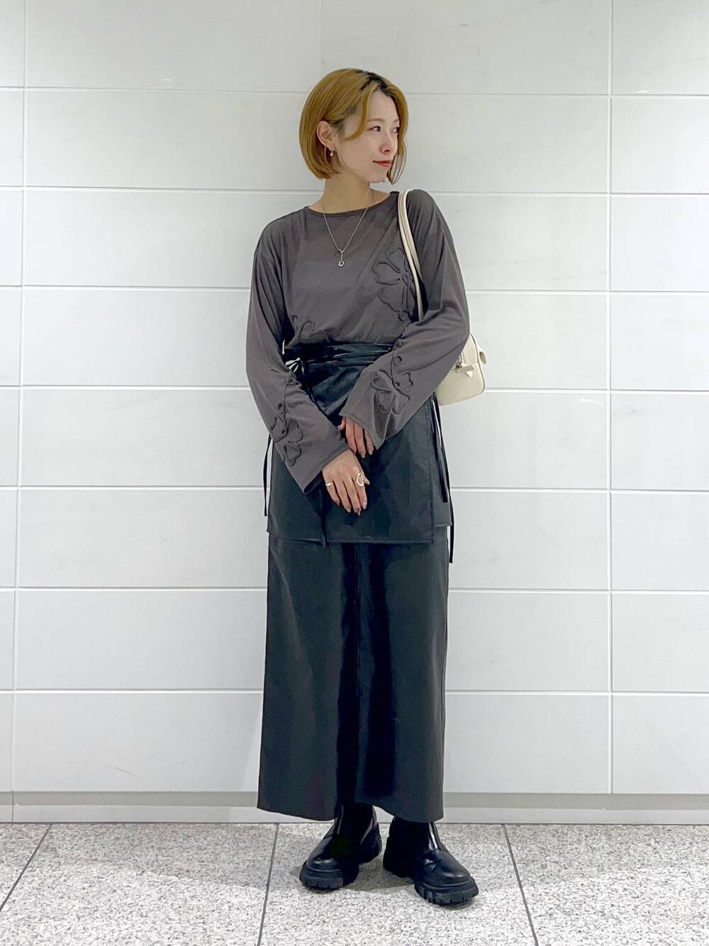 ▼使用アイテムは下からチェックできます▼ Instagramもやってます✌🏻 スタボには載せていない店頭新着情報やネイル画像、 リール動画もupしているので 【トップス】 コード刺繍がおしゃれな薄手のニット。 袖先にもポイントがあるので ワンピースのインナーやベストに重ねても🙆♀️ 【スカート】 ナローシルエットで腰回りが気になりにくい レザーのIラインスカート。 後ろスリット入りで足捌きも◎ 軽いレザーだけど安っぽくない生地で 合わせるだけで大人っぽい印象に♡ 【ラップスカート】 両サイドのリボンで結ぶタイプの巻きスカート。 秋冬はレザーのラップスカートがトレンド! 今回のスタイリングのように ナロースカートとセット風に着ても可愛いし パンツの上に巻いてもおしゃれになります☺️