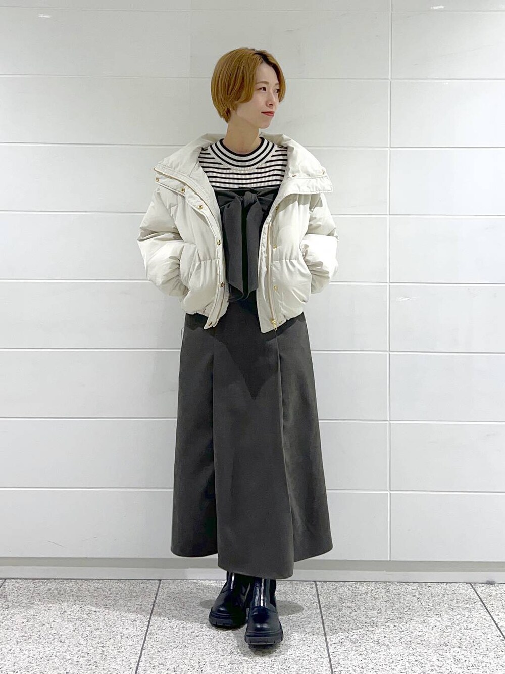 ▼使用アイテムは下からチェックできます▼ Instagramもやってます✌🏻 スタボには載せていない店頭新着情報やネイル画像、 リール動画もupしているので 【アウター】 軽くて暖かい中綿ダウン 金具がゴールドで女性らしさが上がります✨ 腰にかかるくらいのショート丈で 短すぎず大人可愛く着ていただけます! 【トップス】 袖がボタンデザインで シンプルながらも可愛いニット。 わざとお袖は長めに作られているので アウターやカーディガンからチラ見せさせるのも🫶🏻 首元と詰まりすぎてないので 窮屈感なくリラックスして着られます♪ 【スカート】 大人気の3wayスカート♡ コルセットは胸まで上げたビスチェスタイルと 腰でつけるハイウエストスタイルでアレンジ可能! ビスチェ部分は取り外しもできるので シンプルな合わせにもお使いいただけます☺️