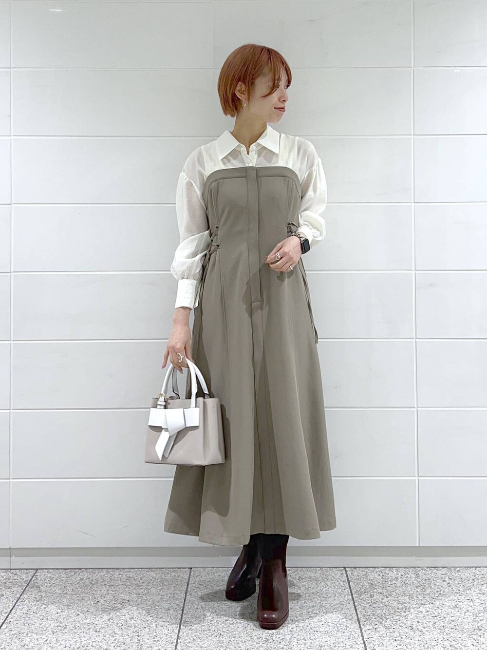 ▼使用アイテムは下からチェックできます▼ Instagramもやってます✌🏻 スタボには載せていない店頭新着情報やネイル画像、 リール動画もupしているので 【ワンピース】 目を引くサイドレースアップが スタイルを良く魅せるモテワンピ♡ 脱ぎ着は前のボタンとチャックなので 毎回リボンを結び直す必要もなし! シャツ部分は透け感があるので 見えてもいいようなインナーを合わせてください🙆♀️