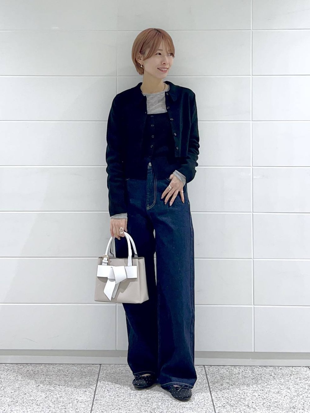 ▼使用アイテムは下からチェックできます▼ Instagramもやってます✌🏻 スタボには載せていない店頭新着情報やネイル画像、 リール動画もupしているので 【トップス】 キャミとニットポロのセットアイテム。 キャミは中に着ても、ポロの上に重ねても 着られるデザインで可愛い😍 コンパクトなシルエットなので コーディネートがすっきりまとまります! 【インナー】 お袖のくしゅくしゅ感が可愛いインナー。 ほんのりシアーで大人っぽさも◎ まだ寒い時期から取り入れやすい シアートップスです😊 【パンツ】 サイズはS,Mの2サイズ展開で 私はMサイズを履いてます! ヒップラインが綺麗でトップスINスタイルや ショート丈のアイテムとの合わせも決まります🙆♀️