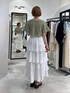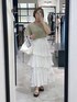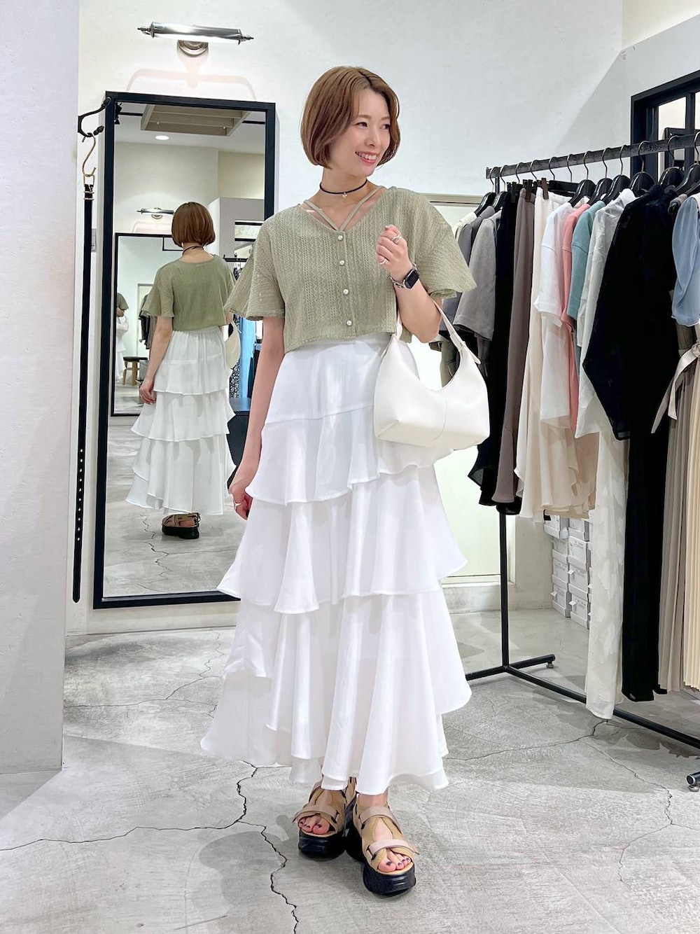 ▼使用アイテムは下からチェックできます▼ Instagramもやってます✌🏻 スタボには載せていない店頭新着情報やネイル画像、 リール動画もupしているので 【トップス】 カーディガンとアンサンブルになっているアイテム。 肩が落ちてからフレアスリーブになるシルエットで 二の腕をカバーしてくれながら 顔周りはすっきり見えるのが嬉しい😍 タンクのストリングデザインがポイント❣️ 骨ナチュの骨っぽさも目立ちにくいです🙆♀️✨ 【スカート】 人気のティアードスカートが 夏仕様の薄い生地になって登場♪ 腰回りがすっきり見えるシルエットで ボリュームはあるスカートでも着痩せして見えます🫶🏻