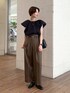 ▼使用アイテムは下からチェックできます▼ Instagramもやってます✌🏻 スタボには載せていない店頭新着情報やネイル画像、 リール動画もupしているので 秋先取りブラウンカラーのパンツコーデ🧸 ぽわんとしたボリューム感が可愛いトップスは シンプルで大人っぽいストレートパンツで引きさんコーデ。 小物はゴールド系を選ぶとより品良く見えて好き🖤 【トップス】 ぽこぽことした表面感がかわいいトップス。 後ろは大きめリボンがついていて 360°どこからみても可愛いシルエット💖 甘めデザインは辛めボトムと合わせるのが私のポイントです! 【パンツ】 骨ナチュのスタイルを良く見せてくれるストレートシルエット✨ ワイドすぎないので着膨れ感なく着られます🙆♀️ 裏地なしなので涼しいパンツです😊