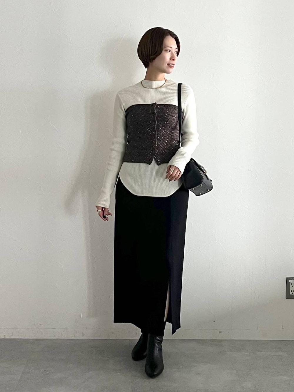 Swipe ▶︎動画やサイド・バックスタイルをご覧いただけます! 【ニット】 シルク混で手触りの柔らかいニット。 プチハイネックなのでタートルネックが苦手な方も着やすいですよ〜! 前後2way仕様で小粒のボタンデザインも コーデのポイントになります☺️ 【ビスチェ】 ワンピースとビスチェのセットアイテム。 今回はビスチェだけ着回してます✨ 下のボタンを開けて着るといまっぽくて可愛いです😘 キラキラのスパンコールがコーデのポイントになります! 【スカート】 フロントスリット入りでレディなタイトスカート。 足捌きもよく歩きやすかったです☺️ ウエストは後ろゴムで着心地も◎ つるっとした表面感でニットが多くなる 秋冬に合わせやすい素材です!  ̄ ̄ ̄ ̄ ̄ ̄ ̄ ̄ ̄ ̄ ̄ ̄ ̄ ̄ ̄ ̄ ̄ Instagram ▶︎ 私服やプライベートを載せています よかったらフォローしてください♡ DM,コメントでのお問い合わせも大歓迎です♡  ̄ ̄ ̄ ̄ ̄ ̄ ̄ ̄ ̄ ̄ ̄ ̄ ̄ ̄ ̄ ̄ ̄