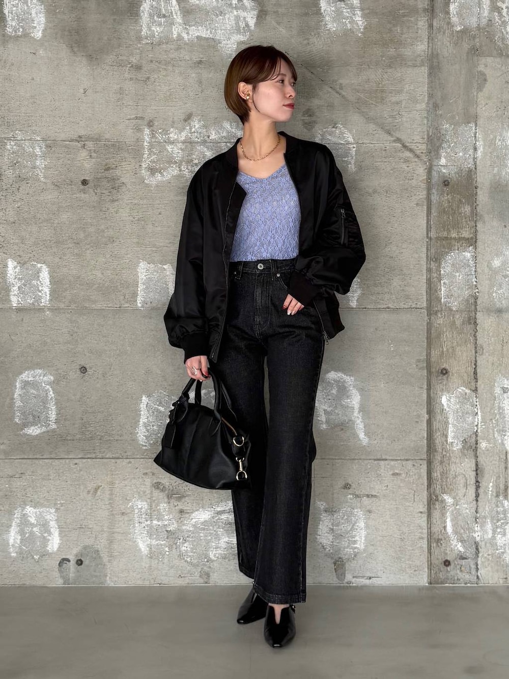 Swipe ▶︎動画やサイド・バックスタイルをご覧いただけます! 【ブルゾン】 オーバーサイズでゆったり着られて楽ちんだけど 大きすぎないシルエットで着膨れしないのが🙆♀️✨ 袖のポケットデザインだったりがミリタリーな印象ですが 素材のほんのりマットな質感が 女性らしく着られてお気に入り🫶🏻 両開きのWジップ仕様なのでトレンド感も出ます! 【トップス】 リバーシブル×前後2wayで 着方が色々なレーストップス🖤 伸縮性のある柔らかいレース素材で着心地も👍🏻 今回は単色見えで着用してみました! ほどよい開きのVネックが 小顔に見せてくれるのでお気に入りです😊 【パンツ】 163cmでMサイズを着用しています。 このデニムのシルエットめちゃくちゃ綺麗だよね😍 フレアっぽいシルエットで脚長感も細見えもします! 素材も国内生産生地を使ってるので 柔らかくて履き心地も良いです◎  ̄ ̄ ̄ ̄ ̄ ̄ ̄ ̄ ̄ ̄ ̄ ̄ ̄ ̄ ̄ ̄ ̄ Instagram ▶︎ 私服やプライベートを載せています よかったらフォローしてください♡ DM,コメントでのお問い合わせも大歓迎です♡  ̄ ̄ ̄ ̄ ̄ ̄ ̄ ̄ ̄ ̄ ̄ ̄ ̄ ̄ ̄ ̄ ̄