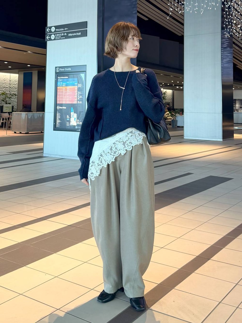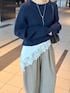 Swipe ▶︎動画やサイド・バックスタイルをご覧いただけます! 【トップス】 シンプルながらもアウトリンキングがポイントになるニット。 厚すぎず薄すぎない春まで使いやすい生地感です🌸 腰回りは隠れるくらいの着丈があるので インでもアウトでも合わせやすい万能トップス✨ 【スカーフ】 紐が長めなので腰にもビスチェ風にも 巻きやすいスカーフです。 大きめレースで生地もしっかり しているのがお気に入りです🫶🏻 【パンツ】 履いて感動!!本当にこういうの欲しかった🥺 さらっとしたきれいめなツイル素材で カジュアルになりすぎず 体型カバーもできるカーブパンツ✨ 楽ちん過ぎて毎日履きたい😂💞  ̄ ̄ ̄ ̄ ̄ ̄ ̄ ̄ ̄ ̄ ̄ ̄ ̄ ̄ ̄ ̄ ̄ Instagram ▶︎ 私服やプライベートを載せています よかったらフォローしてください♡ DM,コメントでのお問い合わせも大歓迎です♡  ̄ ̄ ̄ ̄ ̄ ̄ ̄ ̄ ̄ ̄ ̄ ̄ ̄ ̄ ̄ ̄ ̄