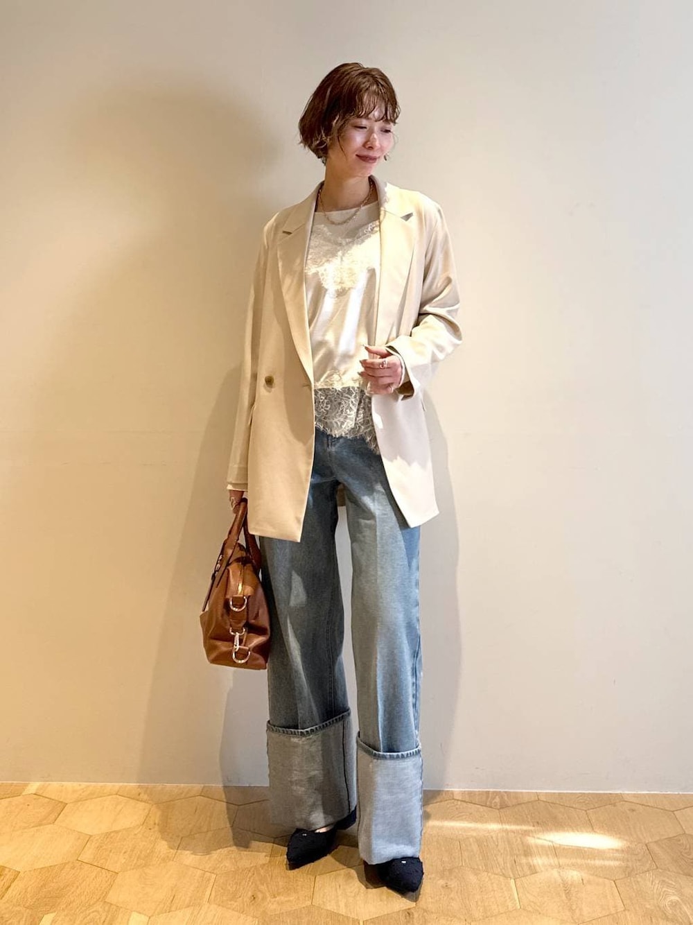 Swipe ▶︎動画やサイド・バックスタイルをご覧いただけます! 【ジャケット】 裏地なしでさらっと羽織れるジャケット。 お尻は隠れるくらいの着丈があり腰回りも安心です🙆♀️ オーバーすぎないシルエットですが 素材もてろっとしてるのでほどよい抜け感が出ます✨ 【インナー】 ストリング付きの長袖インナー。 季節の変わり目に一枚持っておくと重宝します🌷 今回シンプルに着たかったので 前後を変えてストリングは内側に隠してきています👍🏻 【キャミソール】 サテンならではのヴィンテージ感と てろっとした素材の女っぽさが可愛すぎるキャミソール。 レイヤードがトレンドですが Tシャツなどに重ねてキャミを主役にしても ニットやパーカーの中に重ねてチラ見せでも コーデが垢抜ける万能アイテムです😍 【パンツ】 163cmでMサイズを着用。 太めのロールアップがポイントになって可愛い😍 シルエットもズドンとしたワイドシルエットで 大人っぽく履けるデニムです!  ̄ ̄ ̄ ̄ ̄ ̄ ̄ ̄ ̄ ̄ ̄ ̄ ̄ ̄ ̄ ̄ ̄ Instagram ▶︎ 私服やプライベートを載せています よかったらフォローしてください♡ DM,コメントでのお問い合わせも大歓迎です♡  ̄ ̄ ̄ ̄ ̄ ̄ ̄ ̄ ̄ ̄ ̄ ̄ ̄ ̄ ̄ ̄ ̄