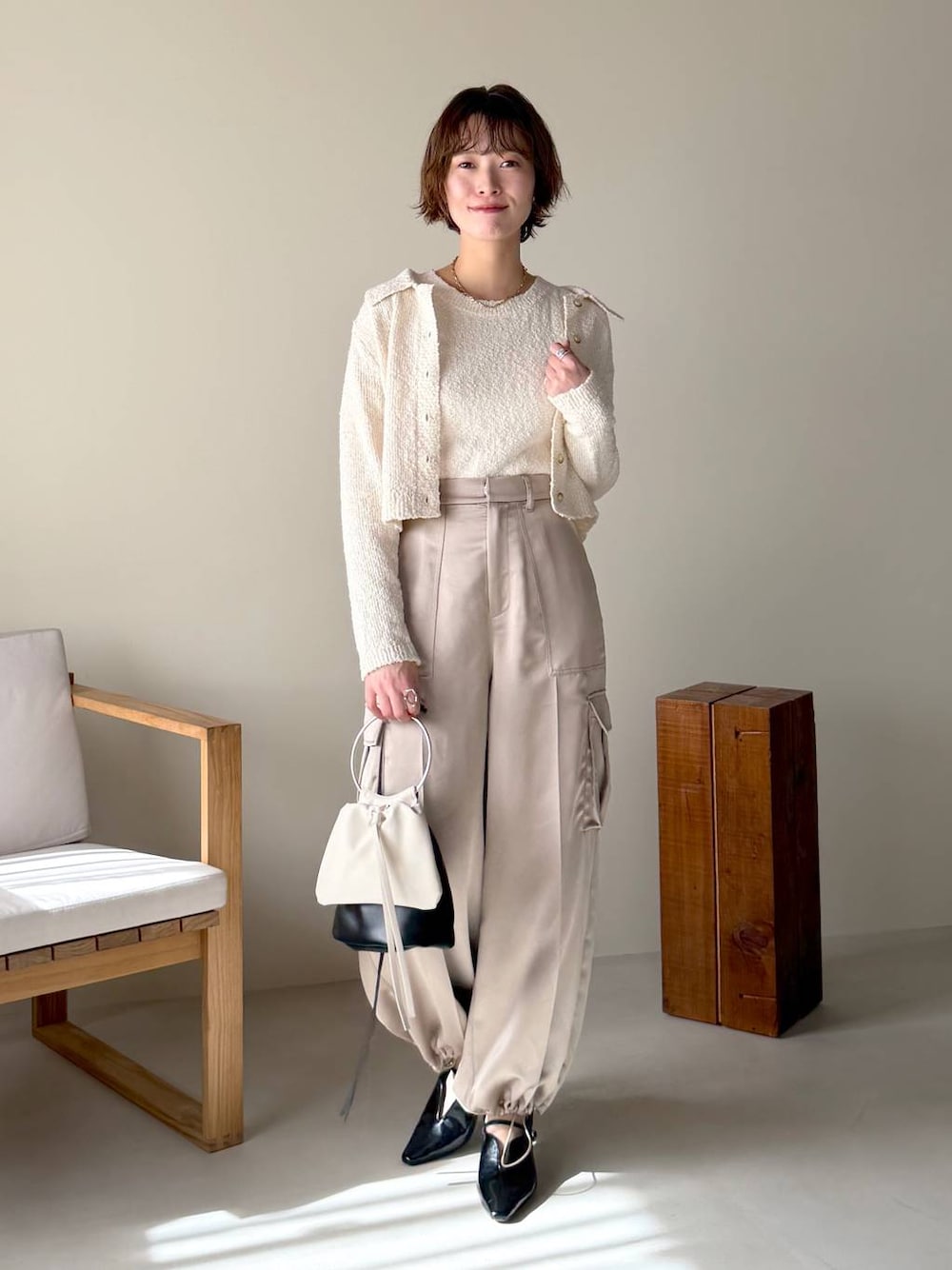 Swipe ▶︎動画やサイド・バックスタイルをご覧いただけます! 【トップス】 タンクトップとカーディガンのアンサンブル。 ぽこぽこの生地感が可愛らしいアイテム🫶🏻 カーデの丈感は短めで脚長感が出るのも嬉しいポイント🙆♀️ 【パンツ】 サテン素材がレディライクなパラシュートパンツ。 裾にドロストが付いてて絞り加減を調整できます! 絞らずに裾を伸ばして着ると 綺麗なワイドストレートのシルエットにもなるので コーデの雰囲気をがらっと変えられるのも👍🏻 柔らかくさらっとした素材で シワになりにくいのもお気に入りポイント🥰  ̄ ̄ ̄ ̄ ̄ ̄ ̄ ̄ ̄ ̄ ̄ ̄ ̄ ̄ ̄ ̄ ̄ Instagram ▶︎ 私服やプライベートを載せています よかったらフォローしてください♡ DM,コメントでのお問い合わせも大歓迎です♡  ̄ ̄ ̄ ̄ ̄ ̄ ̄ ̄ ̄ ̄ ̄ ̄ ̄ ̄ ̄ ̄ ̄