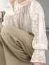 Swipe ▶︎動画やサイド・バックスタイルをご覧いただけます! 【ジャケット】 きれいめな印象のピークドラペルがポイントのジャケット。 ほどよいゆるさはありつつ、すっきり見えるシルエットで きちんと感はありつつもカジュアルにも落とせて良い感じです👍🏻 異素材のスカートやデニムで合わせると大人カジュアルにも◎ 【ブラウス】 総レースで華やかなブラウス。 首元、袖、ウエストがシャーリングになっていて メリハリのつくシルエットがポイント❣️ とっても柔らかくてチクチク全くしないです✨ きれいめな印象になるのでデニムとかで カジュアルに着崩すのも春っぽいし、 セットアップのインナーにしたら セレモニーにも着られます🙆♀️ オールシースルーなのでインナーは同色のキャミがおすすめです。 【パンツ】 163cmでMサイズを着用。 脚がすらっとすっきり見えるスラックス。 シルエットにこだわりゴムは入ってないので お尻周りもきれいな見え方になるのがお気に入り  ̄ ̄ ̄ ̄ ̄ ̄ ̄ ̄ ̄ ̄ ̄ ̄ ̄ ̄ ̄ ̄ ̄ Instagram ▶︎ 私服やプライベートを載せています よかったらフォローしてください♡ DM,コメントでのお問い合わせも大歓迎です♡  ̄ ̄ ̄ ̄ ̄ ̄ ̄ ̄ ̄ ̄ ̄ ̄ ̄ ̄ ̄ ̄ ̄