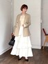 Swipe ▶︎動画やサイド・バックスタイルをご覧いただけます! 【ジャケット】 きれいめな印象のピークドラペルがポイントのジャケット。 ほどよいゆるさはありつつ、すっきり見えるシルエットで きちんと感はありつつもカジュアルにも落とせて良い感じです👍🏻 異素材のスカートやデニムで合わせると大人カジュアルにも◎ 【インナー】 秋に人気だったストリングインナーが長袖で登場! これほんっとうに使いやすいです😍 ストリングの紐は長めに設定されてるので 前でチョーカーのように垂らしたり、 後ろで結んでもいい仕様です。 【スカート】 腰回りすっきりかつフェミニンな定番スカート🖤 後ろゴムなので履き心地も◎ アシンメトリーなティアードデザインは 歩くたびに揺れ感が出てかわいいです🫶🏻 年中使えるシーズンレスな素材です。  ̄ ̄ ̄ ̄ ̄ ̄ ̄ ̄ ̄ ̄ ̄ ̄ ̄ ̄ ̄ ̄ ̄ Instagram ▶︎ 私服やプライベートを載せています よかったらフォローしてください♡ DM,コメントでのお問い合わせも大歓迎です♡  ̄ ̄ ̄ ̄ ̄ ̄ ̄ ̄ ̄ ̄ ̄ ̄ ̄ ̄ ̄ ̄ ̄