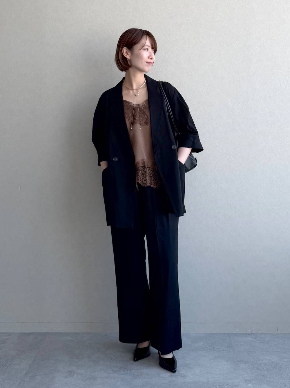 Swipe ▶︎動画やサイド・バックスタイルをご覧いただけます! 【ジャケット】 麻混素材でさらっと着られる半袖ジャケット。 袖にタックが入ってるので ほんのりポワッとするシルエットです。 163cmでお尻がすっぽり隠れるミドル丈で 自然と抜け感が出るのがお気に入り👍🏻 【キャミソール】 サテンならではのヴィンテージ感と てろっとした素材の女っぽさが可愛すぎるキャミソール。 レイヤードがトレンドですが Tシャツなどに重ねてキャミを主役にしても ニットやパーカーの中に重ねてチラ見せでも コーデが垢抜ける万能アイテムです😍 【パンツ】 麻混素材でさらっと履けるスラックス。 ウエストのデザインボタンがコーデのポイントに❣️ ダブルタックで腰回りもカバーしてくれます◎ シンプルなTシャツ合わせでも サマになるシルエットがお気に入りのパンツ✨  ̄ ̄ ̄ ̄ ̄ ̄ ̄ ̄ ̄ ̄ ̄ ̄ ̄ ̄ ̄ ̄ ̄ Instagram ▶︎ 私服やプライベートを載せています よかったらフォローしてください♡ DM,コメントでのお問い合わせも大歓迎です♡  ̄ ̄ ̄ ̄ ̄ ̄ ̄ ̄ ̄ ̄ ̄ ̄ ̄ ̄ ̄ ̄ ̄