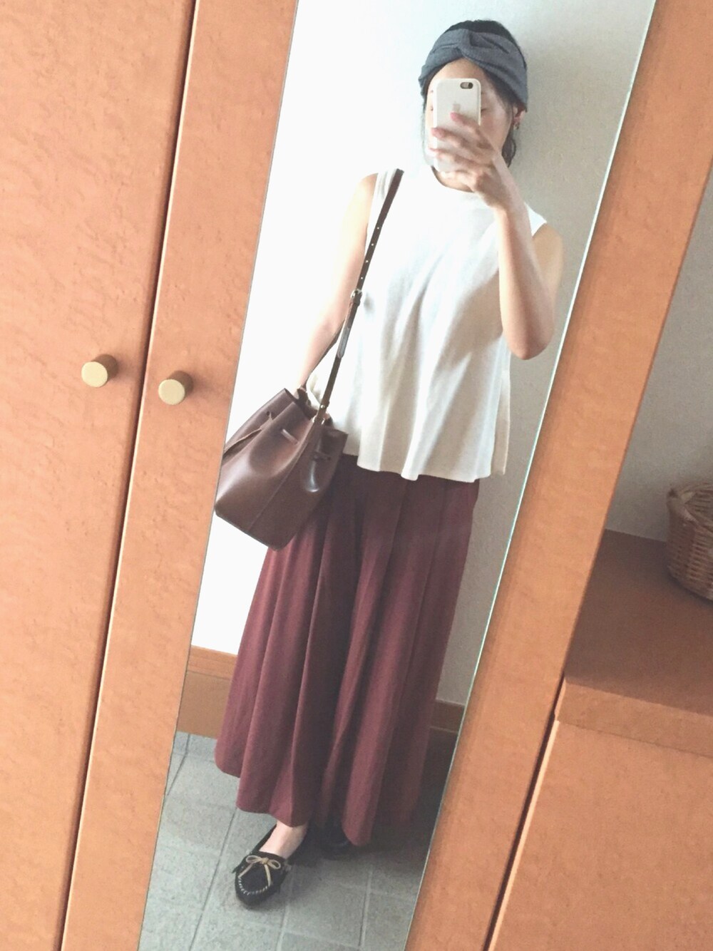 朝晩涼しくて、もぉすっかり秋🍁 とりあえず今年最初の秋色はUNIQLOのスカンツです❁︎