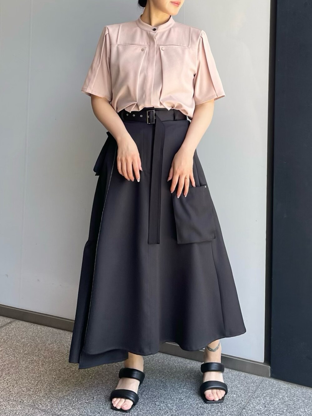Yumi Kitamura(UNITED TOKYO EC事業部 W)のスカート「【ウエスト調節可能】サイドポケットフレアースカート/カーゴスカート」を使ったコーディネート