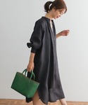 ワンピースはリネン素材なので長袖でも暑くなく、通気性もいいので日焼け対策や冷房対策にも重宝します。 薄手で柔らかな肌触りなので着心地もいいです。Sサイズ着用で袖は手首あたりの丈で着丈は後ろがふくらはぎが隠れるくらいの長さです。 しっかり長さが欲しい方はMサイズがおすすめです(^^)