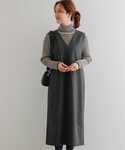 今日はシンプルコーデ。 ジャンパースカートはチャコールだとホコリや糸が目立ちにくく、重くなり過ぎないカラーです。裏地付なので肌触りも良く、タイツを合わせても張り付きません。 今回はシンプルにタートルネックをインナーに入れ、鉄板のお出かけコーデを組んでみました。 ジャンパースカートもコートもSサイズ着用ですっきり見えます。