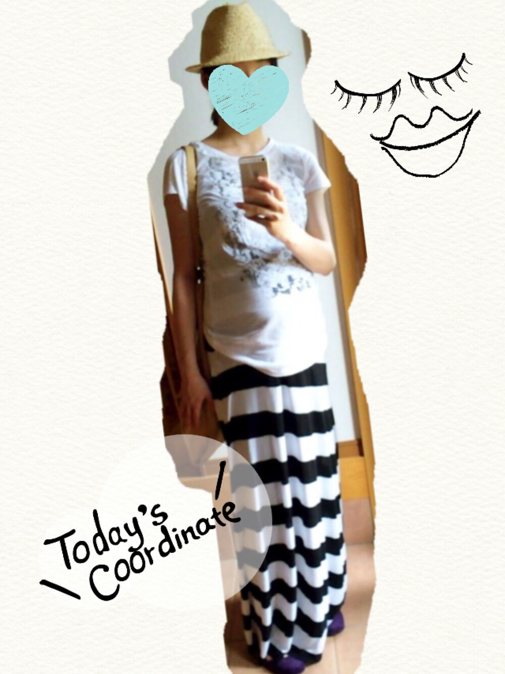 ハット:unico Tシャツ:ノーブランド マキシワンピ:H&M マキシワンピは本当にお腹が楽ちん♪ 10ヶ月 36w 3d