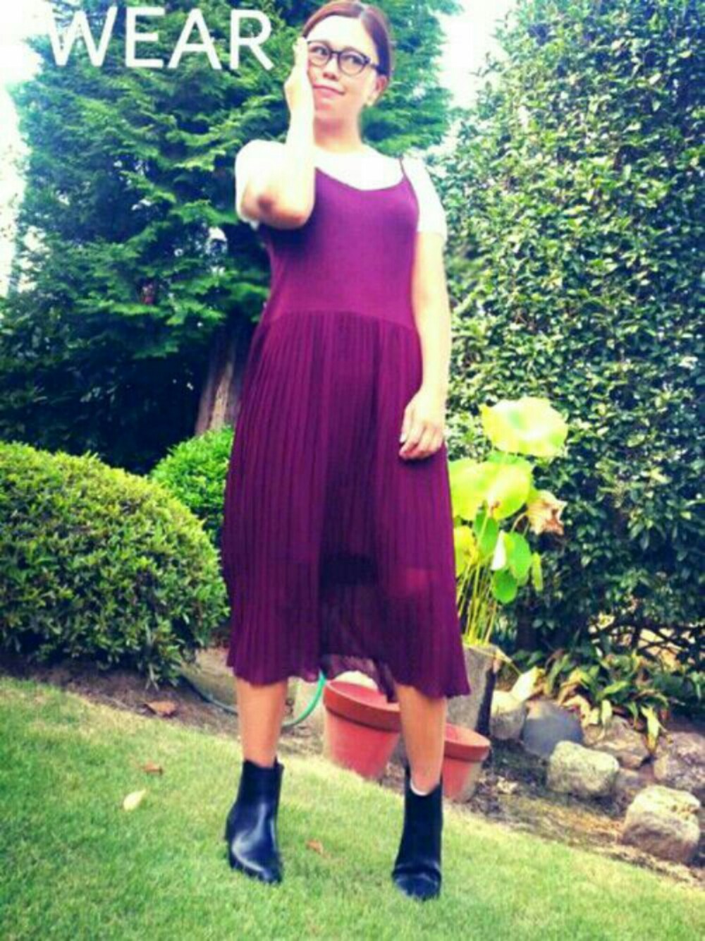 9月ですね。 早いですね~ に。しても夏休み終わったのに暑いですね…(´∀`;) ってことで。 キャミソール熱が下がらない!! 今回はキャミソールワンピースとニットでレイヤードコーデ(о´∀`о) しかも。 プリーツなのがツボなボルドーのキャミワンピ♪ まさに。 大人可愛い( 〃▽〃) ついでに秋メイク!! 今年もリップは赤。みたいですよ~ MACのパーフェクトスコアがおすすめカラーです(*´□`)ノ