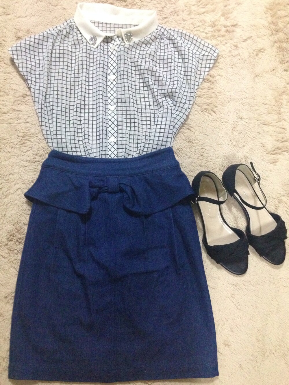 ヒール部分が低くてほぼペタンコで履きやすい♪ 今回はちょっとカッチリめにしましたー! mystywomanのブラウスは前に投稿したブラウスの新色です☆