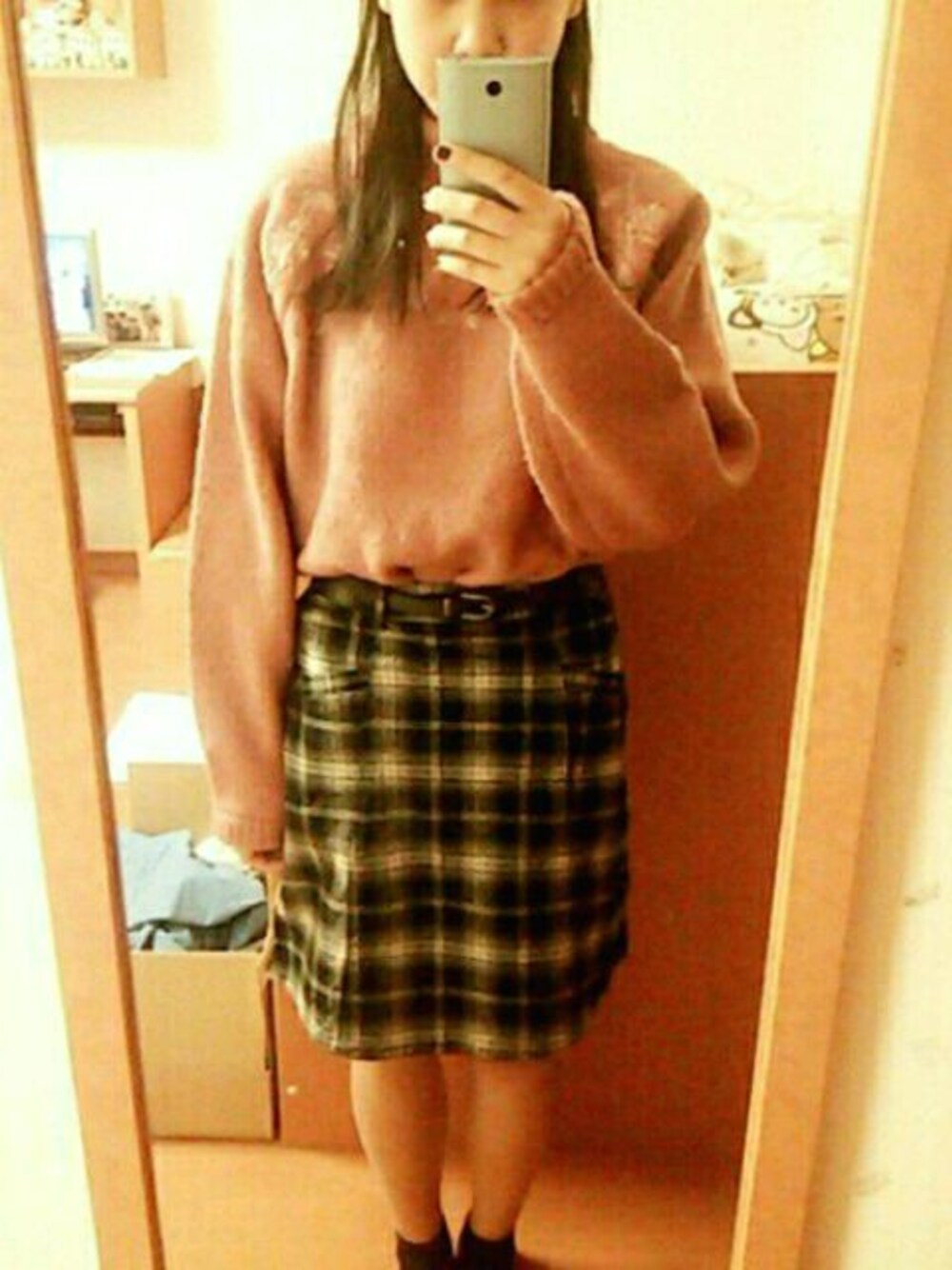 お久しぶりです(๑•̀ㅁ•́ฅ✧ 暖かニットと冬と言えばチェック柄❢ スカートを合わせました。 濃いピンクとブラックチェックが 可愛くなり過ぎず相性抜群( Ö )/