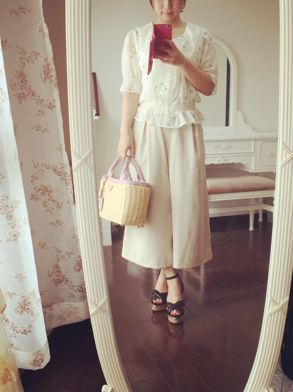 snidelのガウチョパンツはラインが綺麗でおチビの私でも着られました♡ トップスは去年のアンジェラスのもの♪ バッグは先日行ったハワイで購入。一目惚れでした♡♡