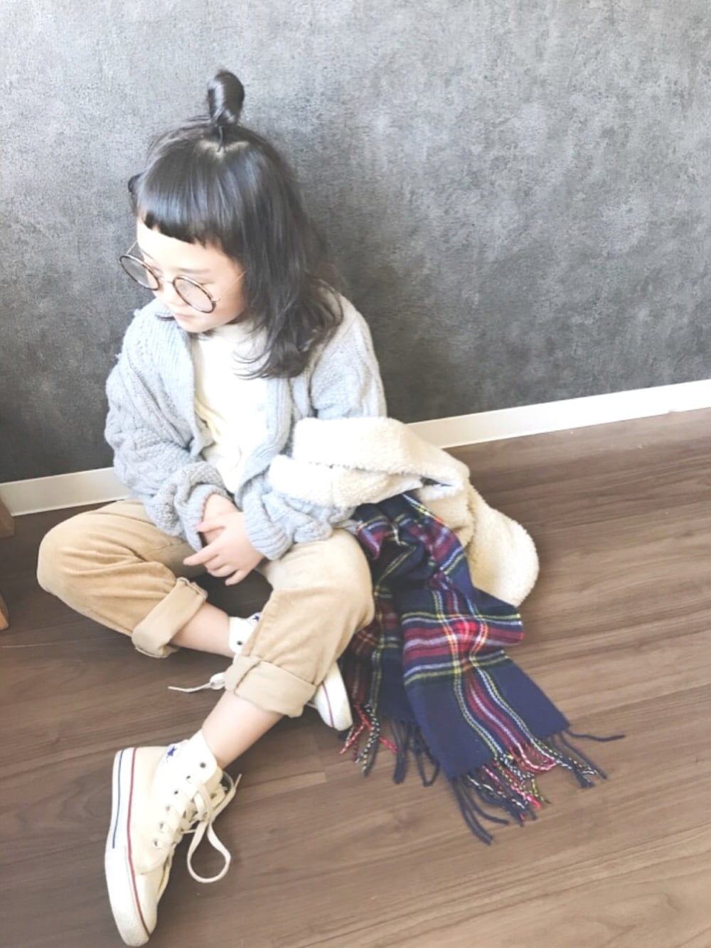 になこ*のカーディガン/ボレロ「ケーブル編みニットカーディガン」を使ったコーディネート