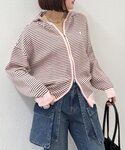 yunacode13(wcloset なんば店)のパーカー「ボーダーニットパーカー」を使ったコーディネート