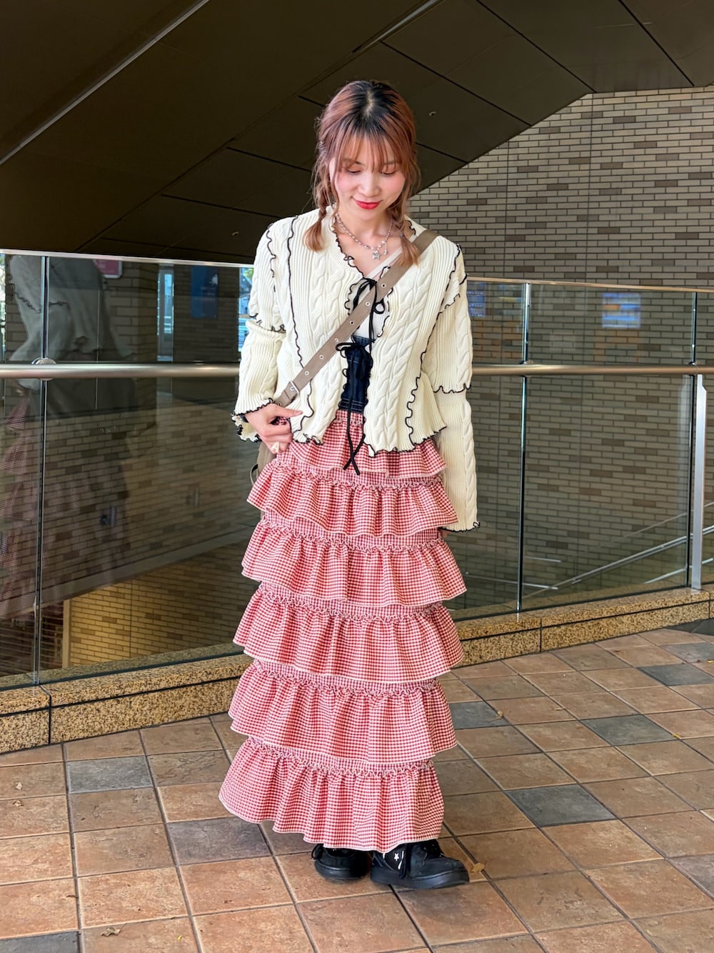 yunacode13(wcloset 天王寺MIO店)のカーディガン/ボレロ「配色メロウケーブルリボンカーディガン」を使ったコーディネート