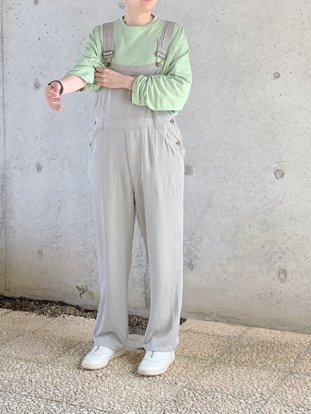 メンズのロンTの色が好みだったから それに合わせてコーデしました オーバーオールでルイージみたいw